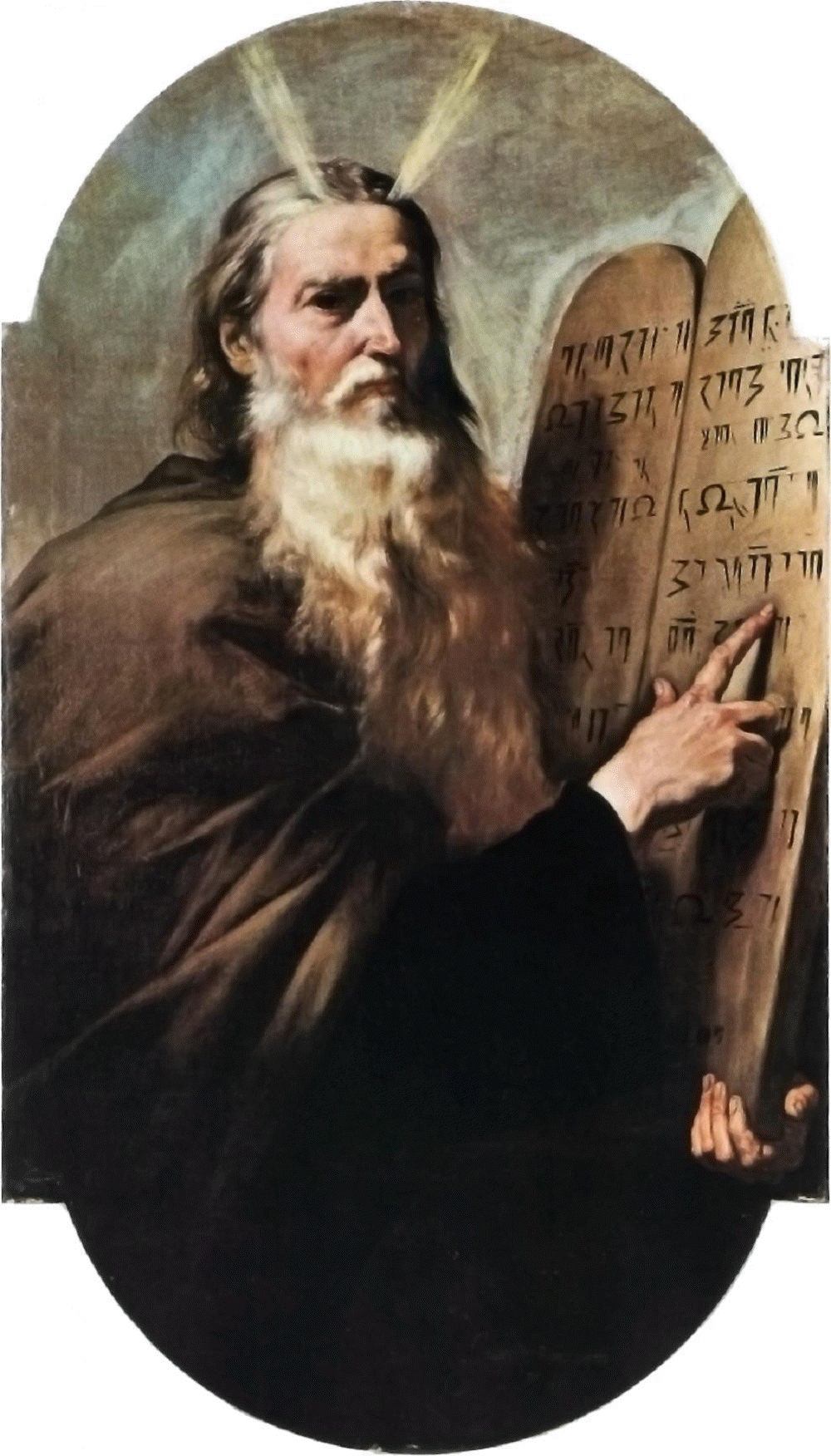 نگاره‌ای از «موسی» بزرگترین پیامبر قوم یهود در حال تعلیم محتویات مکتوب بر روی دو لوح سنگی موسوم به ده فرمان(خوزه‌‌دی ریپرا، قرن 17 میلادی، اسپانیا)(ویکی پدیا)‌