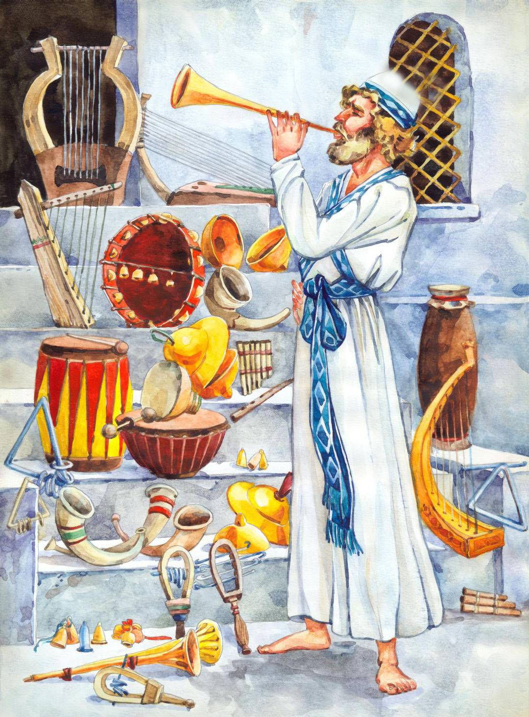 بوق(ترومپت شوفارשופר) بوق(هورن אצוצרות) و سه گونه نای، به علاوهی دوازده خواننده