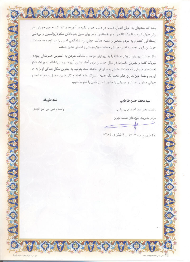 27 شهریورماه، همزمان با آغاز سال نوی یهودیان، جمعی از روحانیون حوزه علمیه تهران