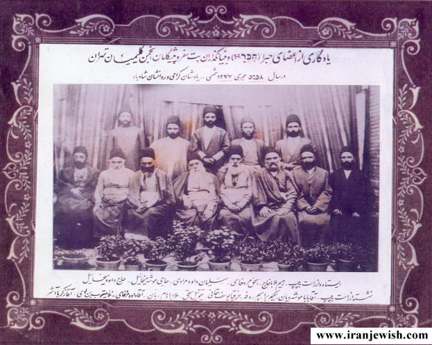 یادگاری از اعضای حبرا و بنیانگذاران بت سفر و پیشگامان انجمن کلیمیان تهران در سال 5658 عبری 1277 شمسی – یادشان گرامی و روان...