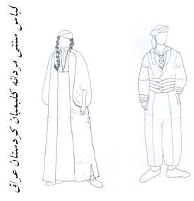 در کردستان عراق، مردها نوعی کت و شلوار (شَلّه شپیکته، salla sappikta) که، شامل دو قسمت بود، می‌پوشیدند. کت کوتاه و شلوار گشاد بود که به رنگ‌های طبیعی سفید، سیاه و قهوه‌ای و از جنس پشم بودند. در زمستان و تابستان، پوشاک همانندی پوشیده می‌شد ولی در مناطق سردسیر، بالاپوشی پشمی (عَبیّه، abayye) اضافه می‌‌گشت. مردان نیز مانند زنان، سر خود را با به سر گذاردن کلاه‌هایی که دور آن دستاری مانند عمامه پیچیده می‌شد، می‌پوشاندند. در شهرها کفش‌های چرمی پوشیده می‌شد، ولی در روستا ـ اگر اصلاًً کفشی به پا می‌شد ـ دست‌ساز بوده است، با زیره‌هایی ساخته شده از چندین لایه‌ی پارچه و رویه‌ای پارچه‌ای یا بافته شده.