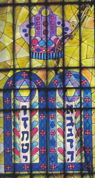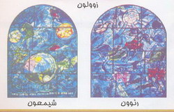 مزامیر داوود – فصل صد و سیزدهم دوازده اسباط بنی اسرائیل – ویترای روی پنجره اثر مارک شاگال درخت یادمان قربانیان یهودی مجارستان