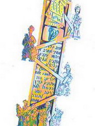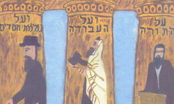 دنیا بر سه پایه استوار است : دین و دانش ، عبادت ، اعمال نیک بخش کامل سفر شموت (جلد دوم تورات) به شکل عبور بنی اسرائیل از دریا نمایشگاه جمعی نقاشان جوان ایرانی یهودی تیر ماه 1384 از کتاب فرزندان استر