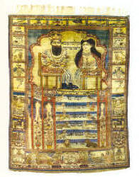 فرش دست باف - حضرت موسی در سمت راست و حضرت هارون در سمت چپ