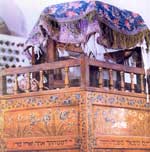 بر روی تخت خود که دارای شش پله بوده
